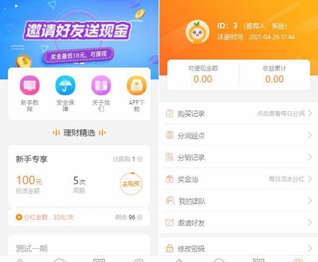 PHP理财源码,遇见互助系统源码、三级分红、红利返点、自带5套UI风格。 简单测试一了一下,还不错的一套系统,对接支付即可。