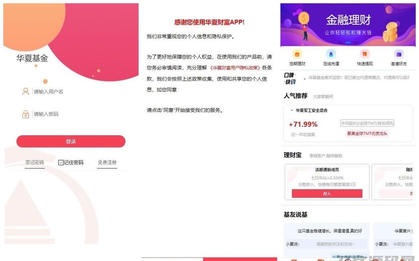 别人二开的东西,华夏基金投资理财源码 基金理财程序,整个前端重构,独一无二的功能逻辑,融合了抢单和基金理财的产品逻辑,大概的逻辑是:抢单、购买、然后卖出获益。具体要比这个复杂很多,就留给用的上的人吧。 源码更新日志: ·更新首页UI,全新模式界面设计,可以封装APP·程序对接在线客服,实现在线沟通,无需花钱对接其他客服系统·后台增加在线客服入口·支持一键申购·增加余额宝的功能 注:在使用本系统时,使用方必须在国家相关法律法规范围内并经过国家相关部门的授权许可,禁止用于一切非法行为。使用用途仅限于测试、实验、研究为目的,禁止用于一切商业运营,本平台不承担使用者在使用过程中的任何违法行为负责。