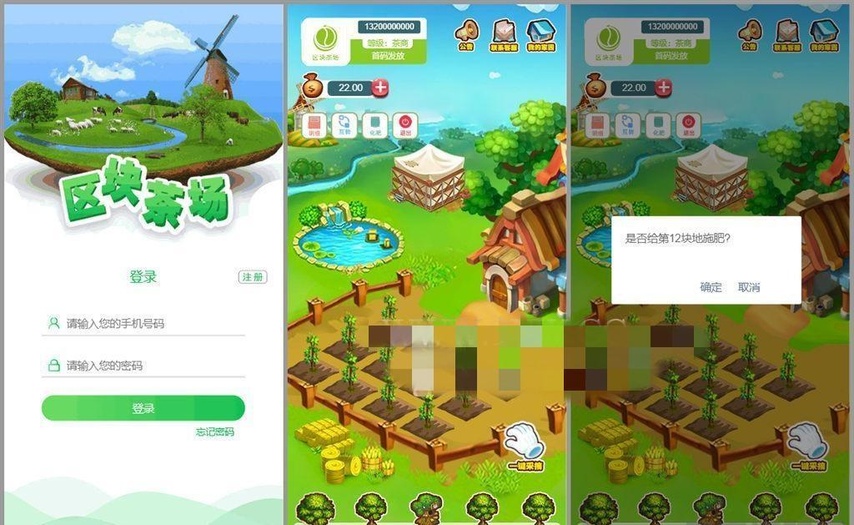 区块链模式茶场游戏源码带商城 虚拟农场+在线商城 带系统交易,茶叶种植系统,带交易大厅,带游戏玩家游戏获得的茶叶可以与商城结合的系统 游戏规则: 佣金规则 茶场分五个级别: 1、茶工级别:免费注册即为茶工;可以种植普洱茶场;开地50g茶叶,种植茶树50g茶叶、每颗茶树产茶5g 2、茶农级别:除种满普洱茶场;还需种植翠芽茶场;翠芽茶场开地100g茶叶,种植茶树100g茶叶、每颗翠芽茶树产茶10g 3、茶商级别:除种满普洱茶场和翠芽茶场;还需种植毛尖茶场;毛尖茶场开地200g茶叶,种植茶树200g茶叶、每颗毛尖茶树产茶20g 4、茶场主级别:除种满普洱茶场、翠芽茶场和毛尖茶场;并需要培养5个茶商部门且还需种植龙井茶场;龙井茶场开地500g茶叶,种植茶树500g茶叶、每颗龙井茶树产茶60g;并享受交易免手续费,并产生复利领导奖。 4、神农级别:除种满普洱茶场、翠芽茶场、毛尖茶场和龙井茶场;并需要培养5个茶场主部门且种植大红袍茶场;大红袍茶场开地5000g茶叶,种植茶树5000g茶叶、每颗龙井茶树产茶750g;并享受交易免手续费,并产生复利领导奖。 注意: 1、手续费:茶工、茶农、茶商出售茶叶,茶工茶农需要20%交易手续费,茶商需要10%交易手续费,茶场主、神农级别免出售手续费。 2、免费注册成为会员,送50g茶叶和一颗普洱树。 3、直推奖励:推广的会员种植茶树,推荐人可得所种茶树价值的20%(越级烧伤) 4、交易佣金:所有直推的用户在交易出售茶叶的时候,推荐人可得5%交易佣金。 5、复利领导奖:茶场主级别同级烧伤,神农级别同级不烧伤。可以赚取整个团队产茶量的1%。 6、所有茶场当天开地,必须当天种茶树,否则第二天地会荒掉。 7、所有茶树周期产茶30次,周期到30次,采摘完茶叶,当天及时补种。 8、每周五不产茶,系统检修维护日。 茶叶规则: 1、普洱茶场,共12块地,每块地种茶树每天产茶5g 2、翠芽茶场,共12块地,每块地种茶树每天产茶10g 3、毛尖茶场,共12块地,每块地种茶树每天产茶20g 4、龙井茶场,共12块地,每块地种茶树每天产茶60g 5、大红袍茶场,共12块地,每块地种茶树每天产茶750g 注意事项:所有茶树种植周期产茶30次,茶场每次产茶时间下午17点至22点,超过时间无法采摘并消失。 采摘的茶叶统一按照交易市场当日单价进行出售。通过玩家之间点对接交易,可以交易市场出售,可商城购物。