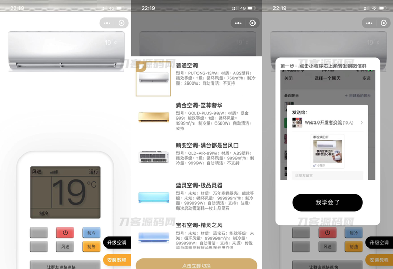 虚拟便携空调小程序源码是一款功能非常丰富的小程序,它支持制冷、制热和风速等多种操作方式。 此外,该小程序还支持分享裂变,让更多的用户了解并使用这个好用的小程序。 支持观看广告切换空调型号,为用户提供更加多样化的选择。同时,在该小程序中还集成了流量主,可以给开发者带来一定的收益。 — 1秒登录查看完整内容 — QQ登录 账号登录
