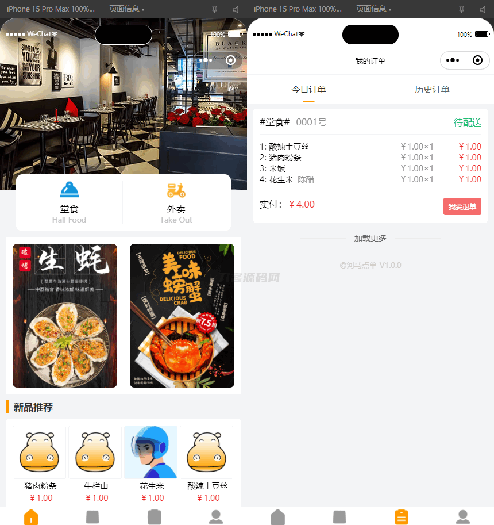 最新扫码点餐外卖配送餐饮小程序系统源码 系统功能: 1.支持多平台:微信小程序,支付宝小程序,和H5平台,页面可以后台DIY管理。 2.小程序页面支持后台DIY,后台修改后即可同步到发布的小程序页面。 3.点单模式:支持堂食,外卖,打包自取。 4.下单:支持多人同时,中途加菜,退单等。 5.订单提醒:支持小程序订阅消息,公众号模板消息,小票打印。 6.结算方式:微信,支付宝,余额,餐后线下等。 7.商品管理:单,多规格,起售数量,打包费,库存销量推荐等操作。 8.门店管理:餐桌,店员,口味,云设备,二维码,wifi,预约订桌等管理。 9.会员卡:付费开会员,积分等级,等级折扣,升级赠送,卡面定制等。 10.积分签到:签到赠送积分或余额,添加签到任务等。 11.会员充值:前后台充值操作,充值套餐,充值送余额,充值送优惠券等。 12.优惠券:现金券(满减),折扣券(满折),赠送券(满赠)等 13.财务统计:实时统计,七日趋势,日统计,月统计,指定时间段统计,报表下载,打印等。 14.小票打印:易联云,飞鹅,大趋等品牌打印机。(其它可扩展) 15.第三方配送:河马跑腿,闪送,UU跑腿,顺丰同城,达达配送,码科配送(其它可扩展) 16.小票打印:易联云,飞鹅,大趋。(其它可扩展) 17.云存储:腾云,阿里,七牛(其它可扩展) 18.短信:腾云,阿里,七牛(其它可扩展)