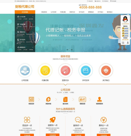 财税代理公司注册代理记账网站织梦模板(带手机端)介绍 财税代理公司注册代理记账网站织梦模板(带手机端)说明:财税代理公司注册代理记账网站织梦模板,织梦DedeCMS最新内核开发的模板,该模板属于财税代理公司类、注册公司代理记账类网站,自带最新的手机移动端,同一个后台,数据即时同步,简单适用!你只需要把图片和文章内容,换成你的,颜色都可以修改,改成适合自己公司或者企业的网站,当然前提是您需要有一定的html+css基础和php,DedeCMS标签等知识!织梦dedecms内核都可以使用;附带测试数据!很适合新手站长朋友使用。完美兼容IE7+、Firefox、Chrome、360浏览器等主流浏览器。此模板是各位做财税代理公司类、注册公司代理记账类网站的首选,有需要的朋友可以下载使用。 模板特点: 1、一款利于SEO的营销型网站模板,手工CSS+DIV,图片ALT,H系列标签已合理运用。 2、同步手机站功能,手机站很强大。
