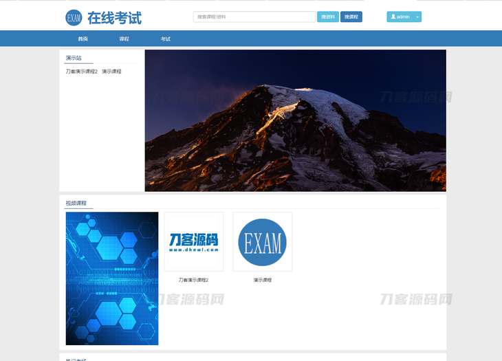 在线考试教学系统平台系统源码 视频教学系统PHP源码 在线考试系统PHP源码 1.部署好网站环境:php5.6+mysql 2.将源码传至网站根目录,php源码用二进制上传,或者上传压缩包在空间解压 3.将“dkewl.sql”数据库文件导入MySQL数据库 3.将lib\config.inc.php里面的数据库连接信息配置成自己的 账户 密码 教师用户账号:teacher 密码:123456 管理用户账号:admin 密码:123456 普通用户账号:ceshi 密码:123456 用admin登陆,就进入后台了。