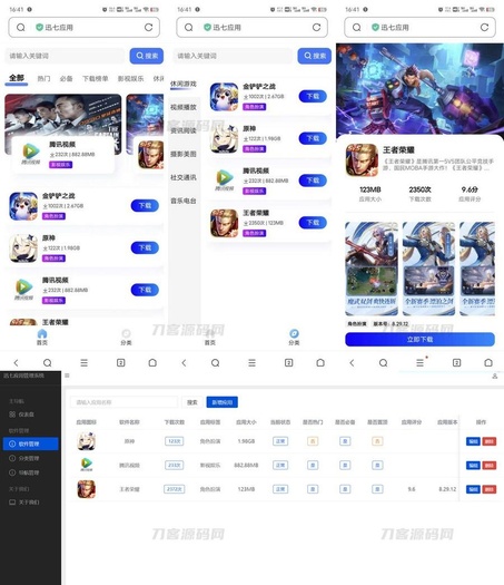 提供简单方便的操作和页面简洁大方的界面,完全免费使用。 这个应用商店网站系统源码名为讯七应用,它提供了丰富的功能,包括置顶、排序、导航排序、分类排序、自定义下载、热门应用、必备应用、导航应用等功能。 该系统的运行环境要求服务器至少1核1GB内存,并且需要安装MySQL 5.7以上的版本。 讯七应用系统的UI界面、功能等都可以进行个性化定制或修改,框架采用了最新的VUE3+TS+VITE技术。 安装教程 1.源码内有教程文件 word文档 2.后台默认账号密码为admin / 123456