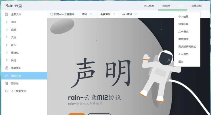 作者言:Rain-Cloud 其实本质上是我的第一次,前后端分离式开发demo,自从学习了一点点electron基础命令(也就是几个标准单词),我就突发奇想,想写一款桌面基本的应用,但是也不知道该写什么demo,然后就这样子,想啊想…,直到发生了震惊国人Pandownload事件,我痛恨百度云的机制,但也无法忘记它带给我们的资源, 所有我就想尝试写一个页面稍微可以上台面的桌面云盘应用。那么Rain-Cloud就诞生了.. 源码无详细搭建教程,有简单部署教程。