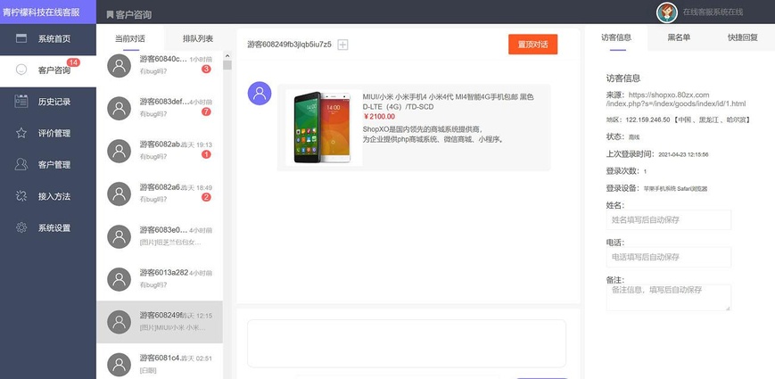 在线客服系统源码-网站在线客服系统-网页在线客服软件代码,网页在线客服软件代码,网站在线客服系统,免费在线客服系统源码 是一款PHP开发的在线客服系统源码,网站在线客服系统,网页在线客服软件代码,免费在线客服系统源码,支持多商家多客服,客服系统源码支持二开,客服同时支持手机移动端和PC网页客服。 php客服在线IM源码,支持自动刷新(网页即时接收消息)+自动回复+可生成接入+手机版管理后台:弹窗接入,微信公众号接入,网页链接接入。 目前第三方在线客服系统,基本都是需要年费(几千一年),受到运营方各种限制,严重影响流量转化订单成交。本在线客服系统解决这个问题,可选择安装在你自己的服务器想怎么用都行! 不会搭建也没关系,本站站长配有安装搭建服务套餐,轻松使用!需要搭建的可以联系站长。 为了更好的发挥网站系统性能推荐Linux服务器 推荐服务器环境:系统 Centos7.x ,安装宝塔面板 ,Nginx1.16-1.18,php版本5.6-7.3(推荐7.3),Mysql=5.6