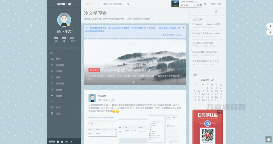 一款功能性较强的Typecho博客主题,仅700多k的体积,拥有相册、说说、时间轴、友链、更换配色等功能 站点一定要设置伪静态,至于怎么设置自行百度一下,很简单;一定要在永久链接中启用地址重写功能 — 1秒登录查看完整内容 — QQ登录 账号登录