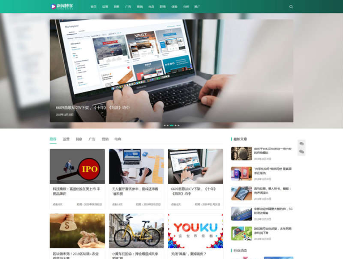 一款绿色响应式的自媒体图片新闻资讯,电商营销,博客资讯类网站织梦模板源码。 包含:主页、专题页、图文列表页、详情页等模块。