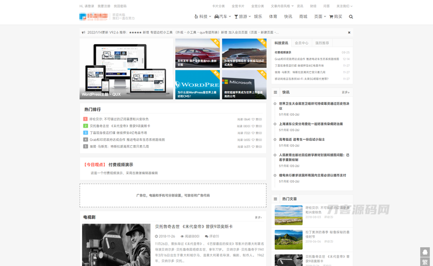WordPress主题 QUX V9.1.5 强大的WordPress主题分享