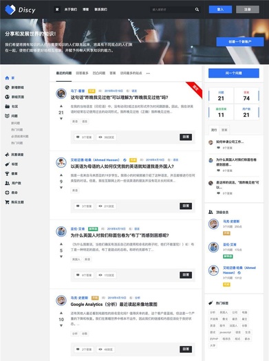 Discy是一个令人惊叹,专业且灵活的社交问题和答案WordPress主题,专门为在线社区,在线问答社区,营销网站,开发人员网站或任何类型的社交社区而设计。主题特性:全响应式设计视网膜就绪很棒的控制面板无限侧边栏无限的颜色HTML5 / CSS3页头选项页脚选项未登录用户的引导注册高级帖子/页面选项–自定义背景颜色/图像,自定义颜色,自定义布局(右侧栏,左侧栏,全角),隐藏/显示元素,页面注释等添加问题页面添加帖子页不同的样式宽度– 宽度1170px,宽度1330px左侧菜单的不同样式文章格式:标准,图片,图库,视频多个Blog布局中图像,大图像个性404页 页面模板与定制选项 本主题提供给大家学习研究借鉴美工之用,请勿用于商业和非法用途,无任何技术支持!