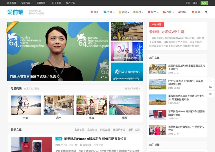自适应设计 完美兼容PC电脑、平板、手机等各类设备访问强大SEO功能首页、文章、页面、分类目录、标签,SEO设置全面覆盖可视化操作配备强大、易用的主题控制面板,轻点鼠标即可完成各种设置强大主题框架采用WordPress官方标准,功能丰富,可拓展性强,安全又稳定超快页面加载速度大师级设计架构、深度代码优化,页面加载飞一般畅快文章功能扩展广告位、面包屑导航、分享、点赞、打赏、文章推荐等,应有尽有.更新日志:v1.2.2 2020-04-07增加热门标签页面模版优化文章页面包屑显示优化文章页上/下一篇文章显示优化文章页社会化分享显示v1.2.1 2020-01-13修复社会化分享功能(原百度分享已下线)v1.2 2019-07-21重要更新: 增加授权缓存机制,大大提升主题运行速度v1.1.4 2019-07-17修复主题后台无法输入HTML代码的问题 更新主题授权中文翻译