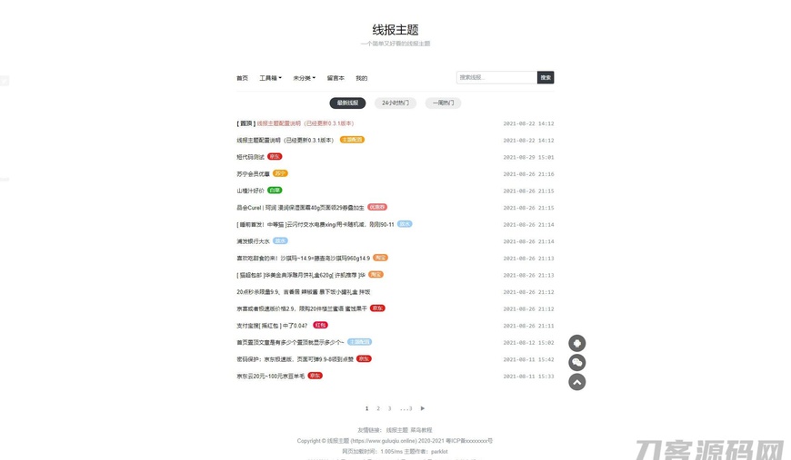 WordPress简单好看的线报主题baolog 安装说明: 到WordPress管理后台中的「外观」-「主题」中点击「添加」,选择baolog的主题包进行上传安装并启用即可。 提示:为了防止主题不兼容,请在安装主题前进行数据备份,防止数据字段重复覆盖等情况发生。