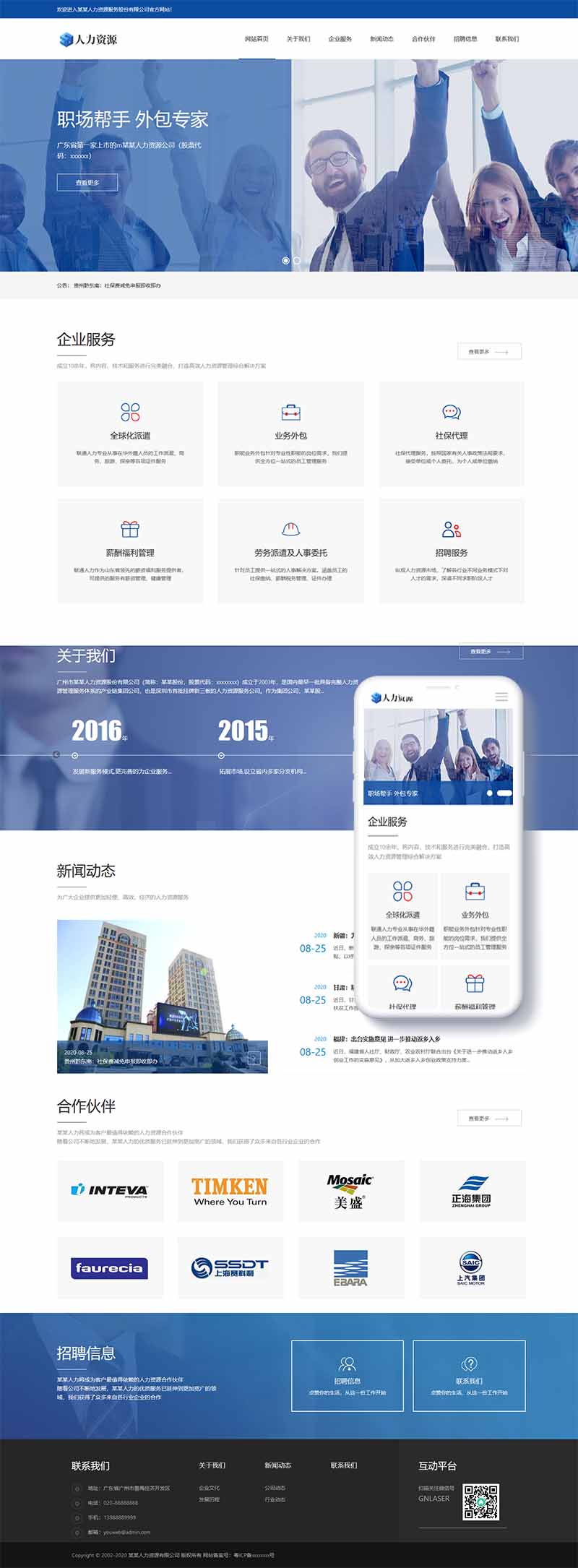 响应式人力资源服务类网站织梦模板(自适应手机端)+利于SEO优化