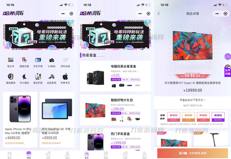 HashMart(哈希玛特)是首款开源的面向生产的高性能、易开发的盲盒系统。它包含:首页看板、商品管理、订单管理、盲盒管理、系统管理、会员管理、权限管理、记录管理,并且拥有完善的搭建使用手册和接口文档。是帮助您快速落地盲盒商城系统的不二之选。 该系统采用了thinkphp 6.0 + Vue 3.0 + uniapp的开发架构,实现了全移动端兼容。您只需编写一份代码,即可打包成小程序、APP和H5网页,真正做到节省成本与时间。 此外,所有代码均为开源,没有任何加密,方便开发者进行二次开发和定制,同时也为学习者提供了下载和学习的机会。