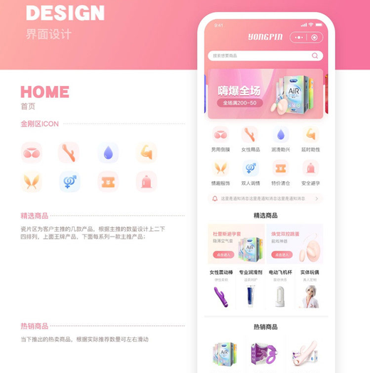项目背景 一款成人用品线上零售商城,在线销售男士、女士避孕用品、情趣内衣和玩具类等两性健康产品,客户有自己的货源为了扩大渠道,方便客户购买,开发本款小程序。项目需求 产品分类清晰明了,首页需突出主打产品,页面展示产品清楚明了;购买流程不要繁琐;后期方便用户查看订单情况。有促销信息及优惠券可以提高刺激消费者 没有搭建教程,感兴趣的会员请下载自行研究。