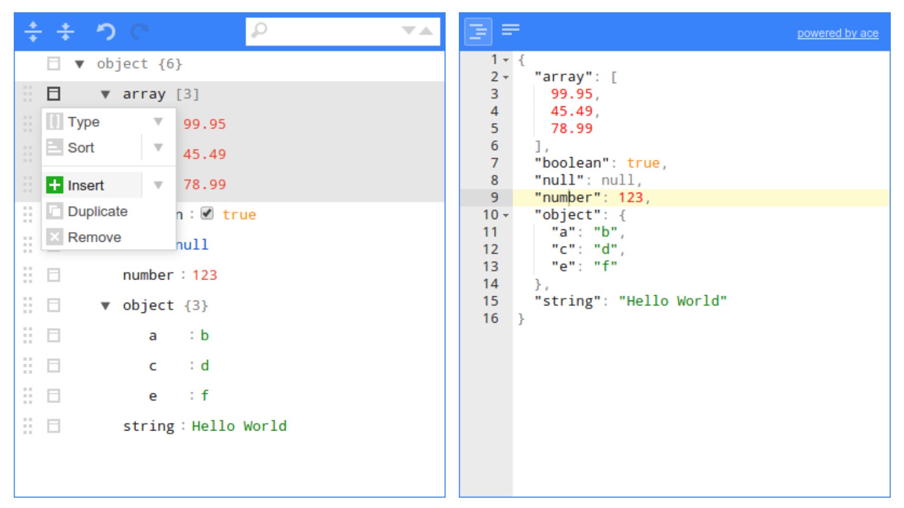 检查 JSON(由 Ace 提供支持)。