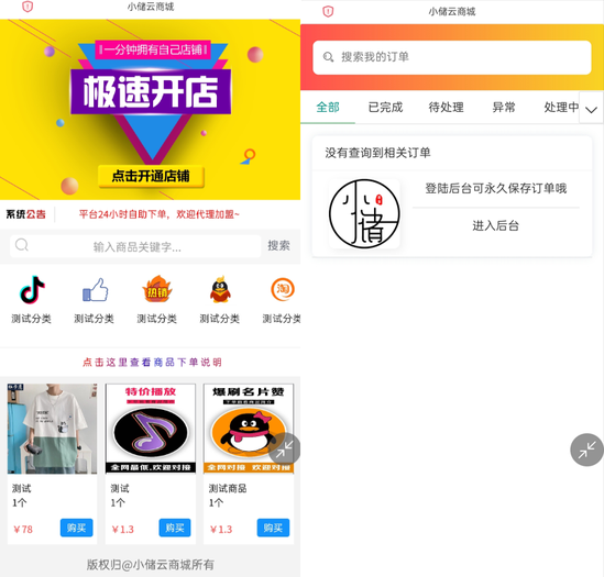 安装时的token授权码相当于后台登录密码,请自行设置一个然后进行安装 可对接社区系统 支持分站一键管理 下单界面仿淘宝样式 支持购物车商品推荐功能 支持在线发卡 自带4种模板+背景随意搭配 ①:将源码上传至虚拟机或者服务器并解压(源码放在服务器根目录) ②:访问域名/install.php安装(填写数据库以及初始密码相关信息) ③:安装完成后登陆后台默认后台地址域名/admin ④:进入后台修改网站相关信息。 ⑤:添加商品,配置支付接口 后台地址 域名/admin
