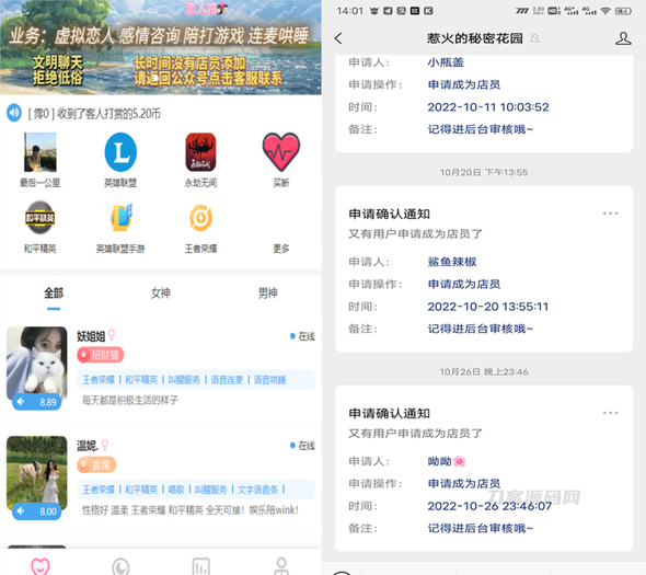 此系统源码包含详细搭建教程及素材图,附搭建教程 源码仅用于学习使用(价值15980元) 此陪玩系统源码本人亲自测试搭建并且运营了一段时间,亲测有效,下方是我测试运营的 下面开始讲讲游戏陪玩语音聊天这个市场有多挣钱 一个人的游戏叫孤独,一群人的游戏才是乐趣,随着电竞产业在国内的快速发展,游戏陪练行业也迅速成长,现在很多游戏玩家为了追求更高质量的游戏体验感,往往会在玩游戏的过程中找陪练,通过陪玩系统进行预约游戏陪练人员,根据时间或者游戏场数进行付费,游戏陪练系统广受年轻人的欢迎。 游戏陪玩系统主要的优势就是,只要有手游和网游不断推出,就有钱可赚。为什么呢?因为电竞行业正处于上升发展阶段,而且玩游戏对于现代人来说是很好的一种解压方式,所以在市场和用户需求方面都是有保证的。再加上现代人的社交压力越来越大,人们开始害怕“熟人社交”,有时候更多的只是想到陪玩平台找一个不认识的陌生人陪自己玩游戏,聊聊天,而这部分人群占比也是比较高的。 游戏陪玩软件为如今火热的电竞游戏增添了新的趣味玩法,让热爱游戏的你有了学习和交友的平台,而游戏陪玩源码开发的不断优化完善,将促进游戏陪玩行业的快递发展,接下来开始介绍下面这款多功能商业版源码系统。 兼容电脑手机后台 下方包含暴单模式功能丨一键生成数据用于宣传